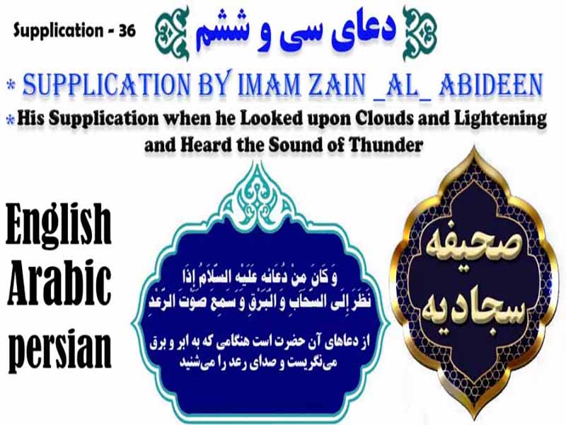 دعای سی و ششم صحیفه سجادیه از دعاهای مأثور از امام سجاد(ع) که هنگام دیدن ابر و برق آسمان و شنیدن صدای رعد آن را میخواند. امام سجاد(ع) در این دعا رعد و برق را از نشانههای خدا میداند و درخواست باران سودمند از درگاه الهی دارد. در این دعا همچنین بر لزوم تضرع و زاری برای دوری شرور تأکید میکند و انسان را در برابر قهر الهی ناتوان از دفاع میبیند.
